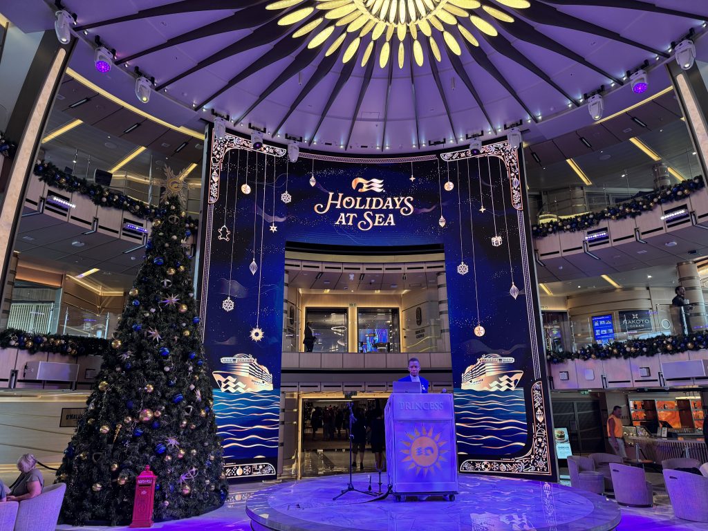 Crowds onboard seemed similar this year to last, and I was able to get an approximate passenger count both weeks. On week one (Christmas), the galley tour had a dashboard screen displaying 4794 passengers aboard with 1917 dinner reservations. The second week (New Year’s) we attended the Captain’s Circle party and heard a count of 4632 – about half of those people were said to be new-to-Princess cruisers.