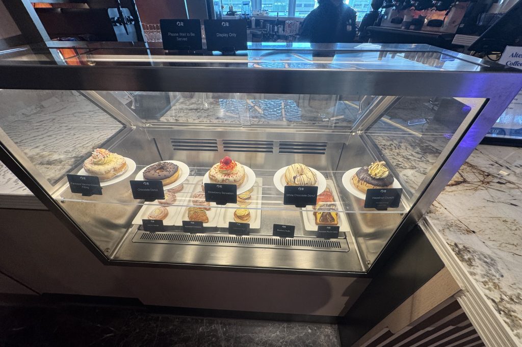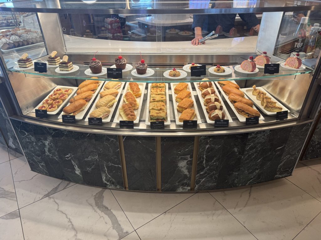 The venues and configuration on Sun Princess also didn’t change much with a year’s time. The initial changes (from the pre-launch plans, to the September 2024 restaurant shuffle) have settled fairly well, albeit with the inclusion of some new hastily-designed, temporary-looking signage at the perimeter of the Piazza directing passengers with the correct routes to main dining rooms. The curved ramp on the port side of the Dome had also been cordoned off with some panels, with the area behind being used for storage. A section outside the Wheelhouse Bar has now been turned into a small Park West art gallery with sales desk. During week two there were several of the sales team trying to nab people on the way to dinner – not aggressively, but still present.