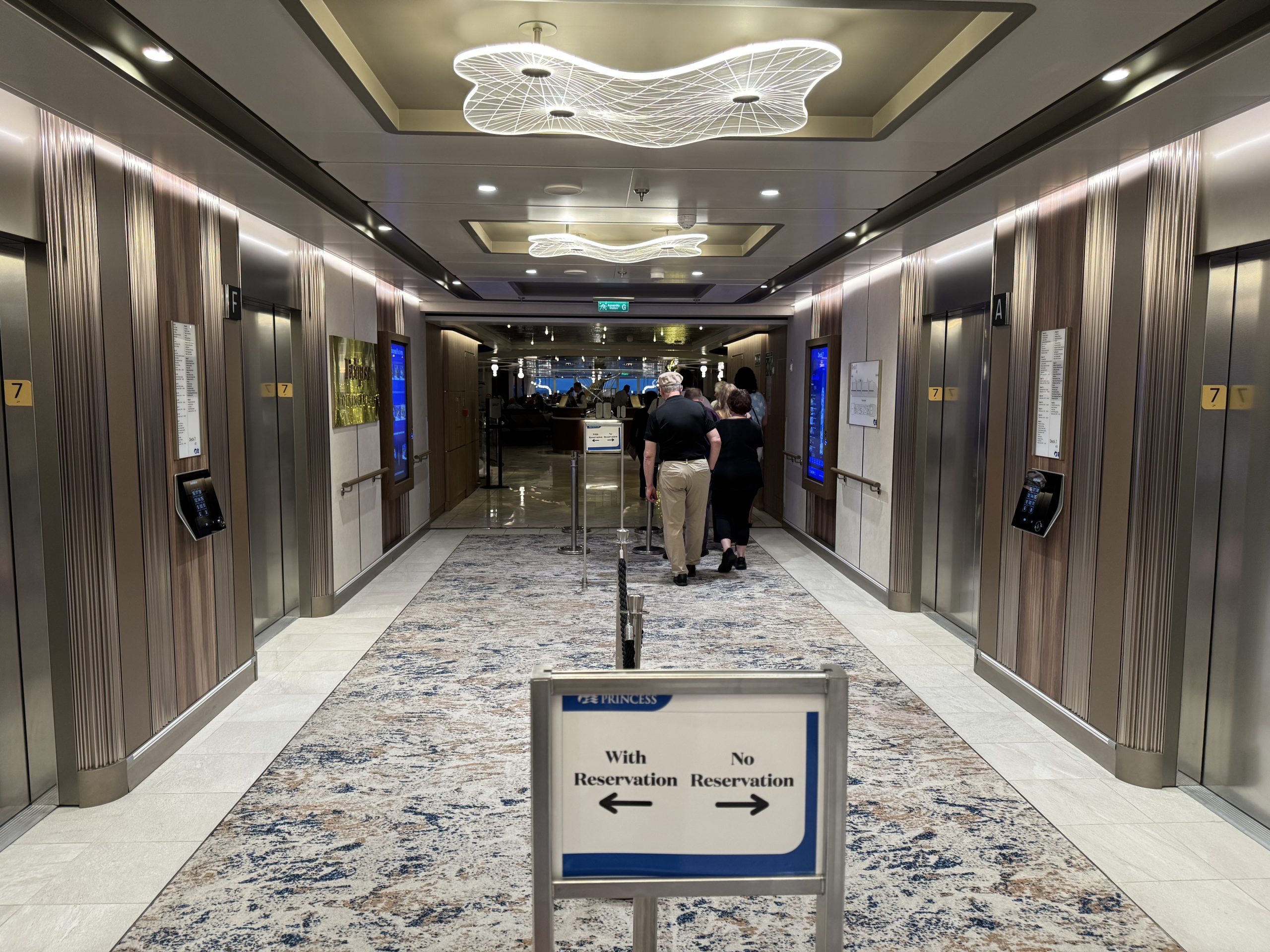 I did end up with a representative who was unfailingly polite, but surprisingly did not switch out the two affected Medallions. She came back to the desk, noted that there were two Medallions already inside the cabin, and suggested that the interior privacy lock had been engaged and can cause that error message. One of the Medallions in the cabin was a kid’s (who hadn’t taken it to Firefly Park) and the other’s was Kayla’s – but we don’t turn the extra lock on unless we’re all completely retired for the night. Not willing to take that brush-off as the answer, I asked if I could run down one deck and come back after trying the door, with the goal of not having to wait in line again.