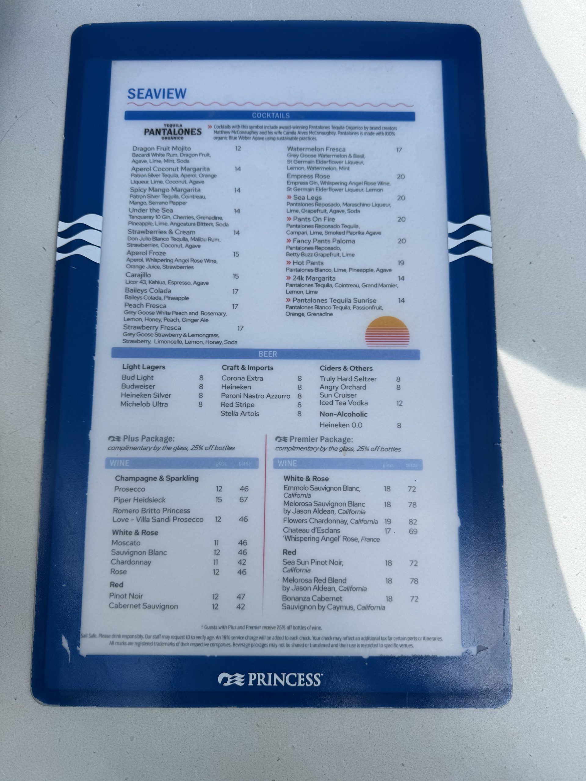 This also impacted the Platinum and Elite lounge drink service, although the servers did offer to make the trek upstairs. People with earlier dinner reservations were also out of luck for booze as the ship didn’t depart until 6pm – we pushed our usual 5:40 dinner arrival to just before 6 when the reservation would still be in effect. By the time we were seated and settled, wine was available once again.