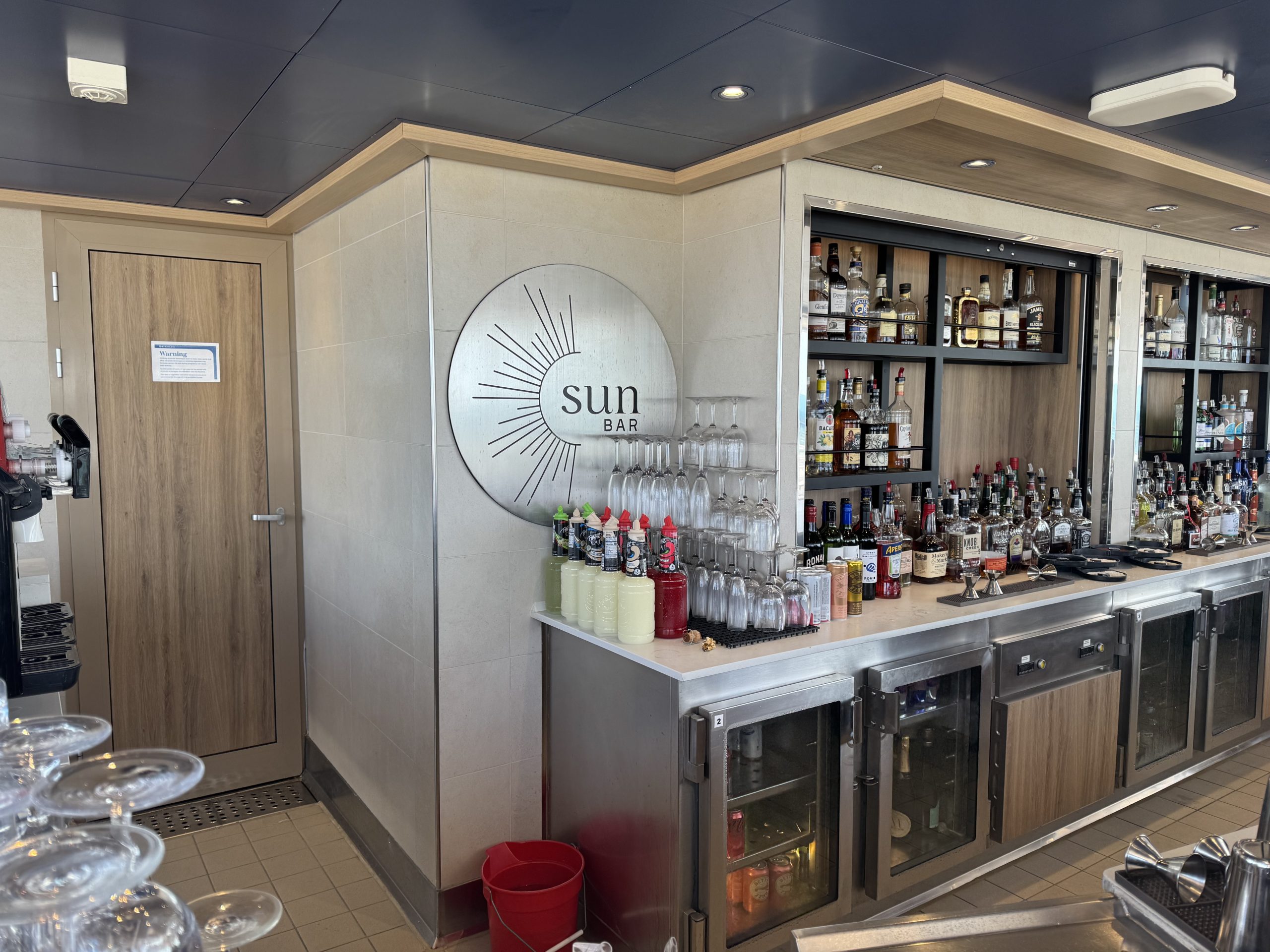 While we didn’t leave Sun Princess for Grand Cayman, one inconvenience for those of us who stayed onboard was a restriction allowing only one bar total open on the ship while within tendering distance of the island. It’s a blatant mechanism to encourage people to get off the ship and spend money in the port – which wouldn’t be so terrible if you didn’t have to take a water shuttle to land. The Sun Bar on deck 18 was the chosen venue to remain open, and while I was able to get a seat in the morning with quick service from the bartenders, the afternoon was absolutely packed with people.