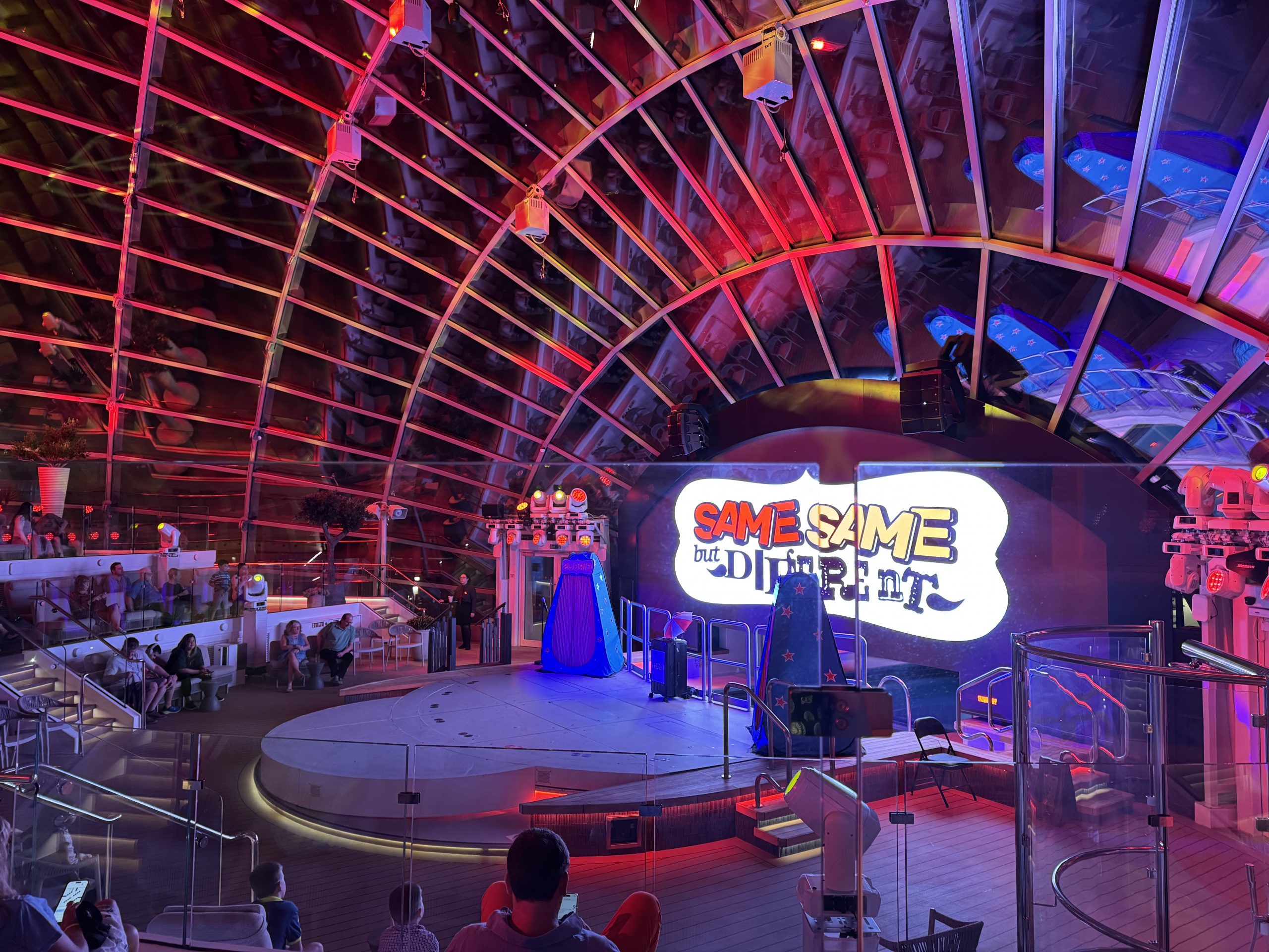 Special mention to The Twins’ Trip, who were fly-on performers that ran a show in the Dome called “Same Same but Different”. It was family-friendly, entertaining, and took just the right amount of time. They unfortunately happened to get interrupted for several minutes with the Captain’s evening announcement and then got right back to it.