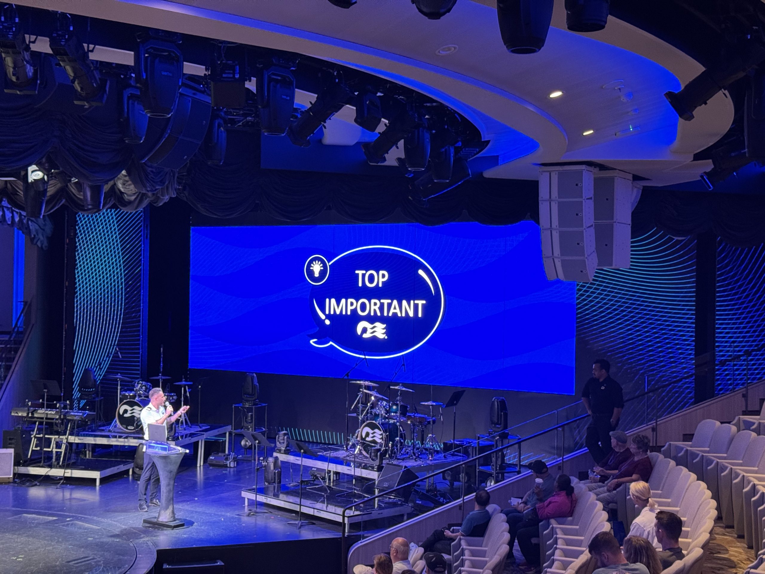 As Day 7 approached, we were thrilled to know that tomorrow wouldn’t end the vacation. There was a 9:30AM information session in the Arena that I attended on behalf of the family, which had some procedural tidbits. These won’t be the same for every sailing and certainly not for every ship or cruise line, but the key bits were:
